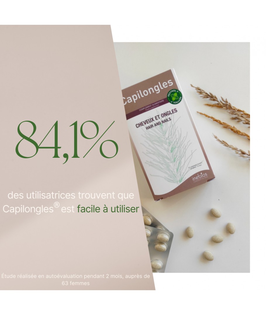 Capilongles® a été spécialement formulé pour apporter un soutien complet aux cheveux et ongles, tout en participant à la protection contre le stress oxydatif.