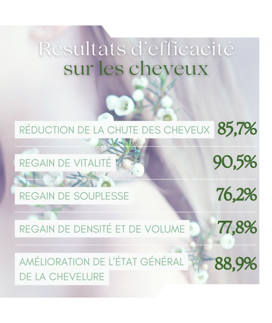 Marie-Hélène G. Cure de trois mois, en suis à à peine deux mois donc pas encore de résultats flagrants, cheveux ont quand même l'air de pousser plus vite. A poursuivre donc pour voir effets à plus long terme.